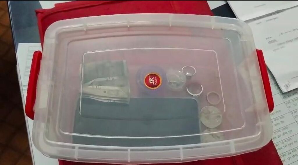 अलमारी की जांच करने पर पता चला कि अज्ञात चोरों द्वारा उसकी पत्नी के सोने-चांदी के जेवरात (कान की फुली, नाक की फुली, चूड़ी, चैन, चांदी की पायल), नगदी रकम 18,000 रुपये, पुराने सिक्के लगभग 10,000 रुपये, हाथ की घड़ी तथा अन्य कीमती सामान चोरी कर लिया गया है।